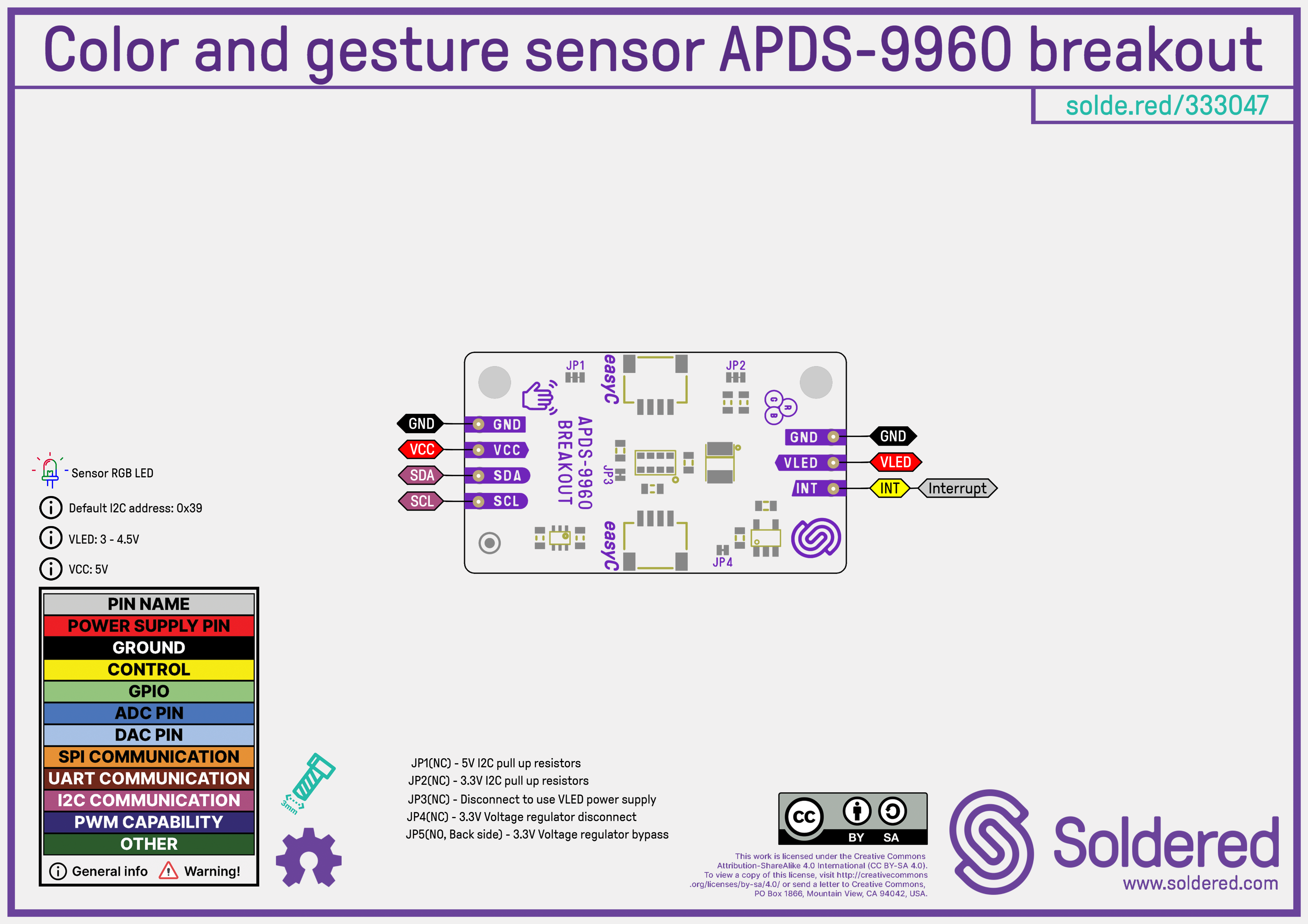 | JP2 | NC (Normally closed) | Connects SDA/SCL pull-up resistors to 3.3V for I2C communication. |