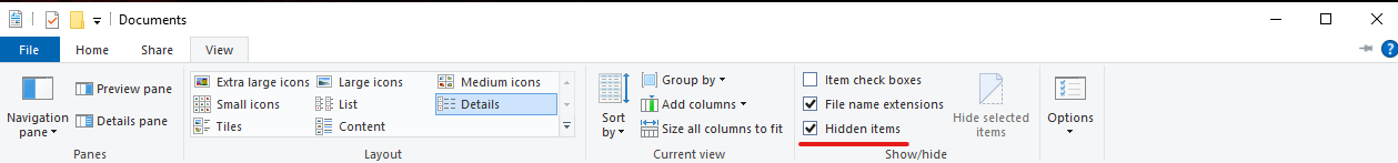 - Alternatively, use the menu to select “Show Hidden Files.”