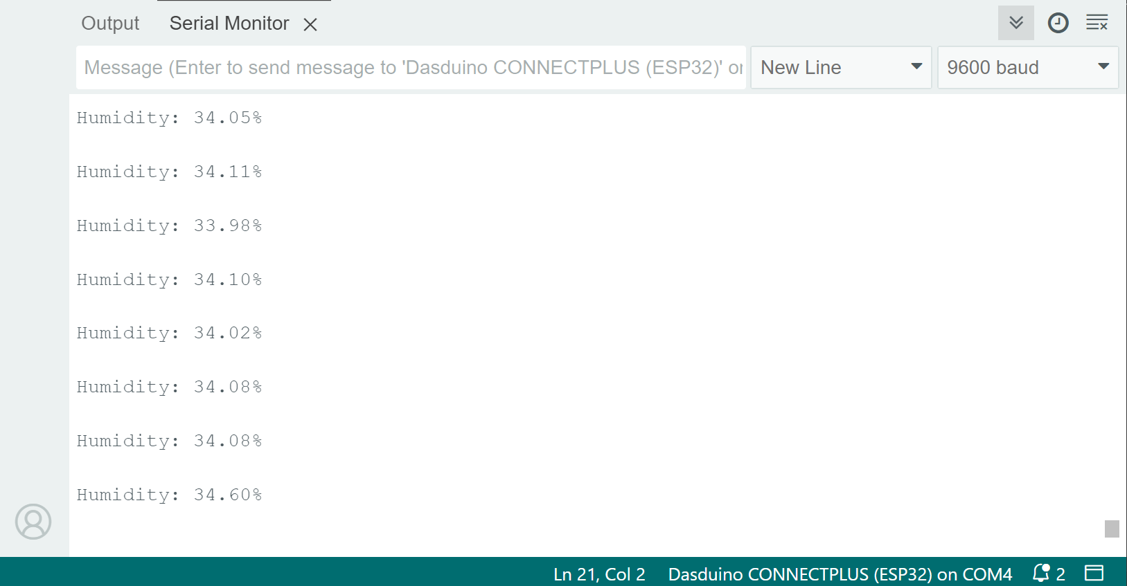 To get humidity values only, use the readHumidity() function. The sensor samples humidity as a percentage.