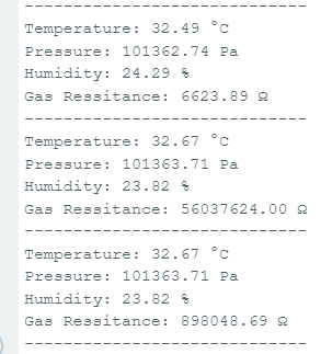 Serial.print(sensor.readGas(0)); // Read gas resistance in ohms