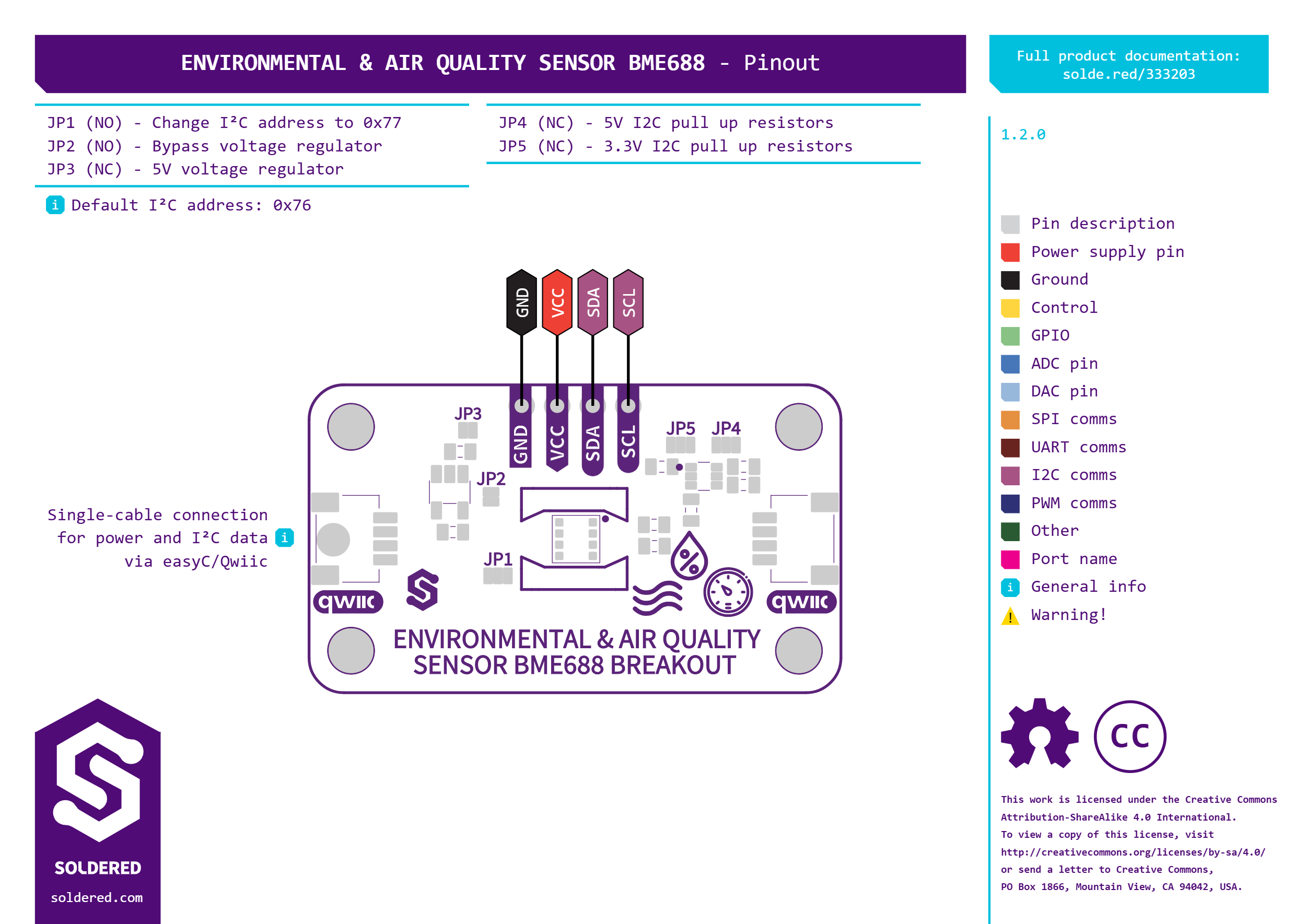 | JP1 | Normally open | Used to change the device address. When shorted to GND, the address is 0x76, 0x77 when connected to VCC. |