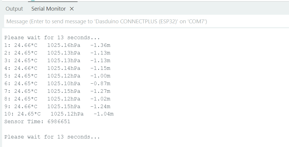Serial.println(F("Please wait for 13 seconds...")); // Wait message