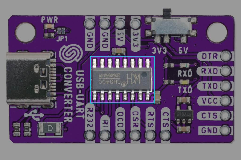 The CH340G works by converting USB signals into serial communication signals and vice versa. It essentially translates data from the computer’s USB interface into a format that can be understood by microcontrollers, sensors, and other serial devices.
