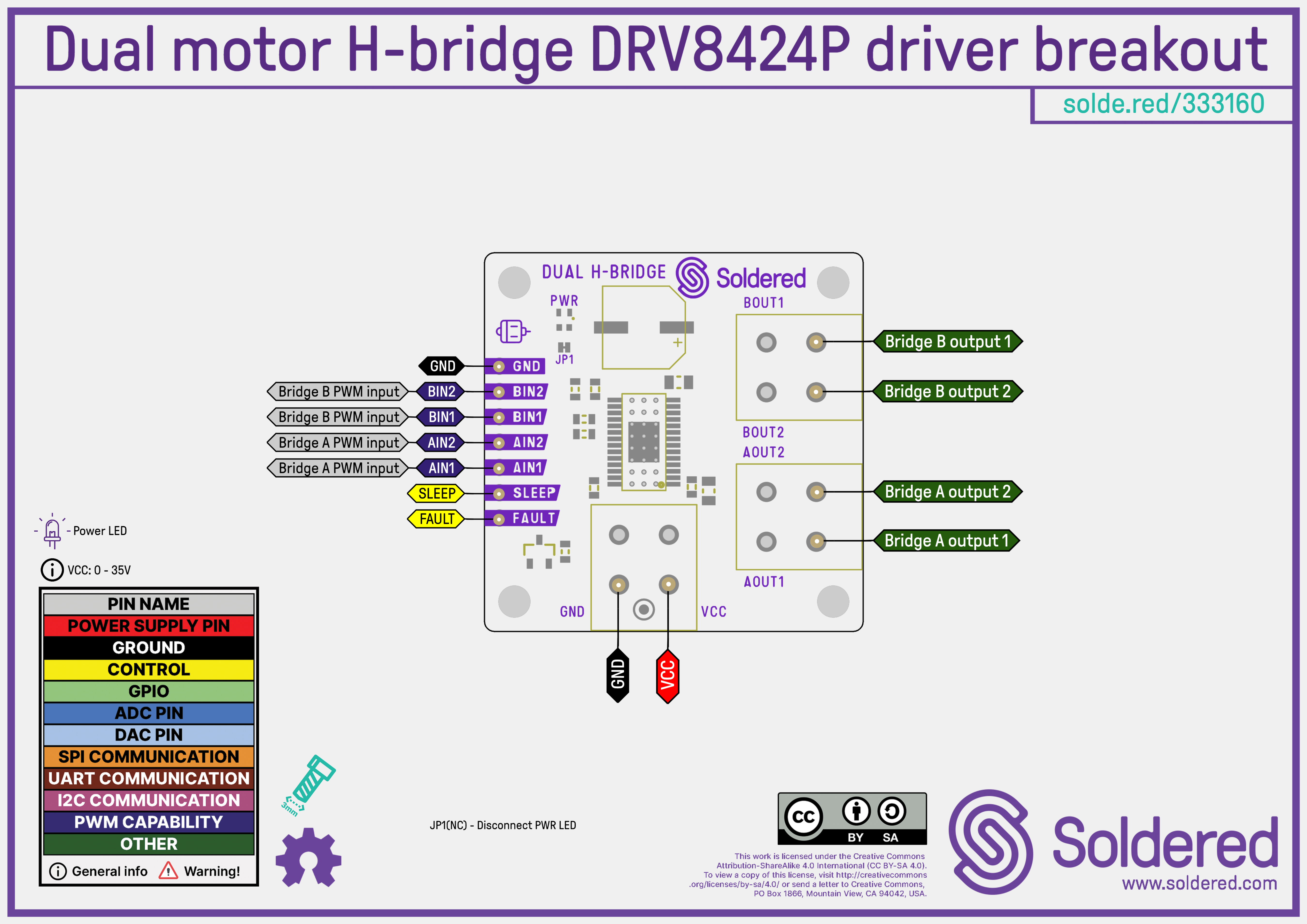 Hardware design files for the dual motor H-bridge DRV8424P driver breakout board.