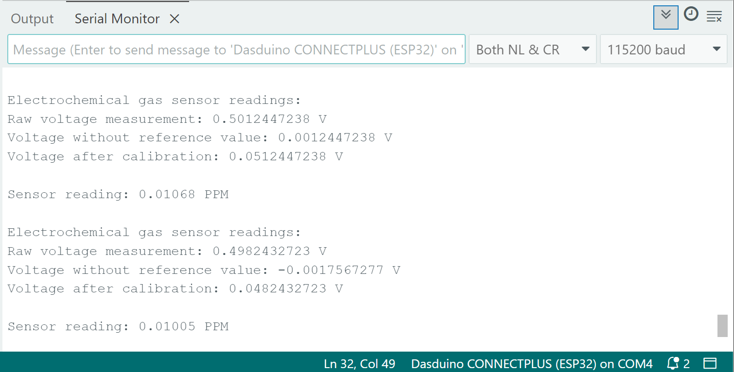 ElectrochemicalGasSensor sensor(SENSOR_NH3, 0x49, 32);