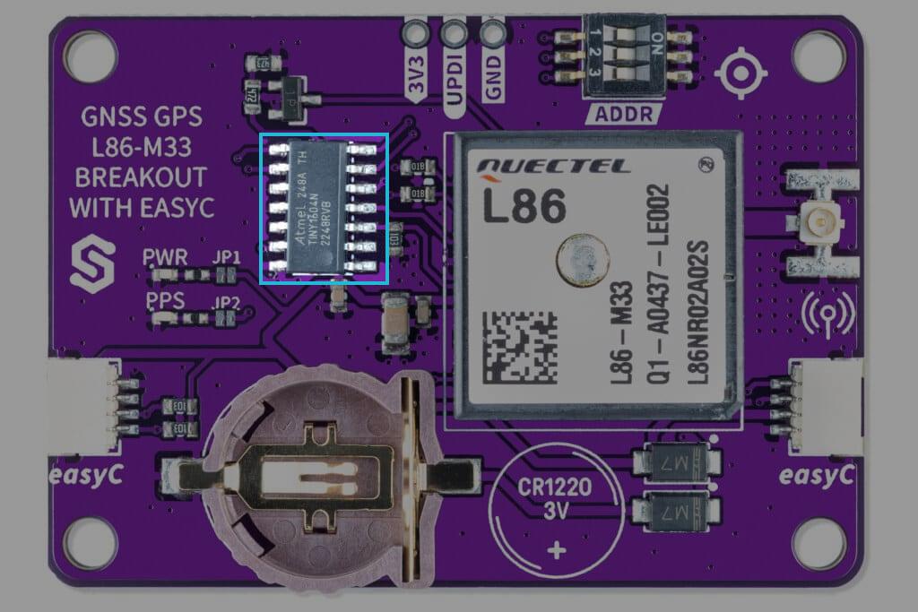 Qwiic versions of the product use the onboard ATTINY404 MCU to implement I2C communication. The breakout board operates with a default I2C address of 0x30, but it can be changed using onboard switches. Once detected, the ATTINY404 receives data from the sensor and passes it to the main MCU using the I2C data line. To check in detail how the ATTINY404 is programmed, please refer to the firmware GitHub page.