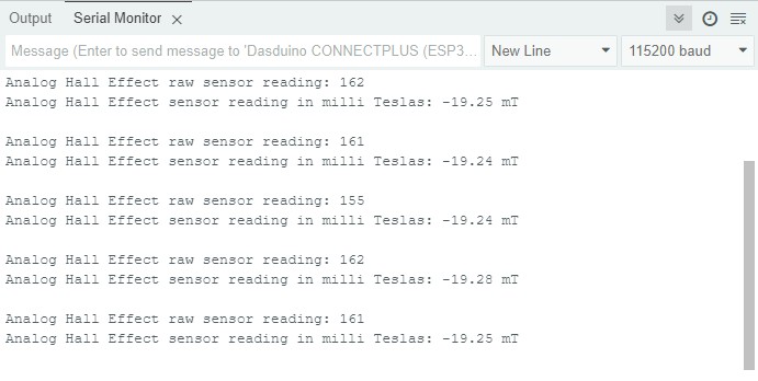 Serial.print("Analog Hall Effect raw sensor reading: ");