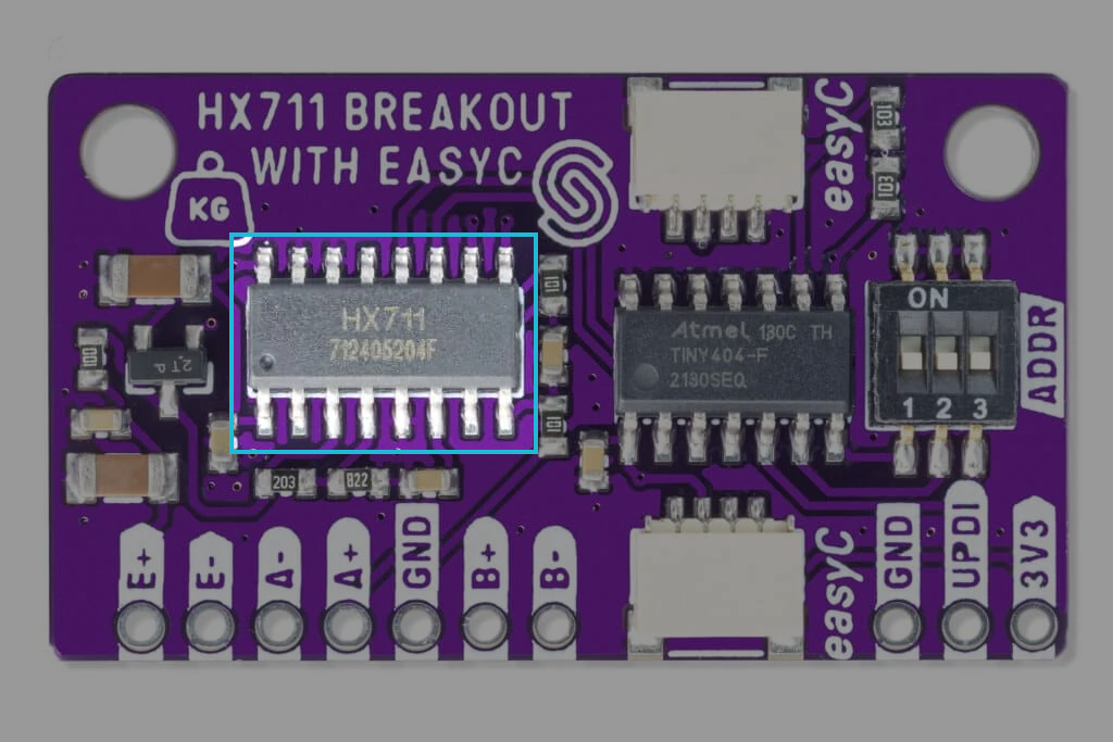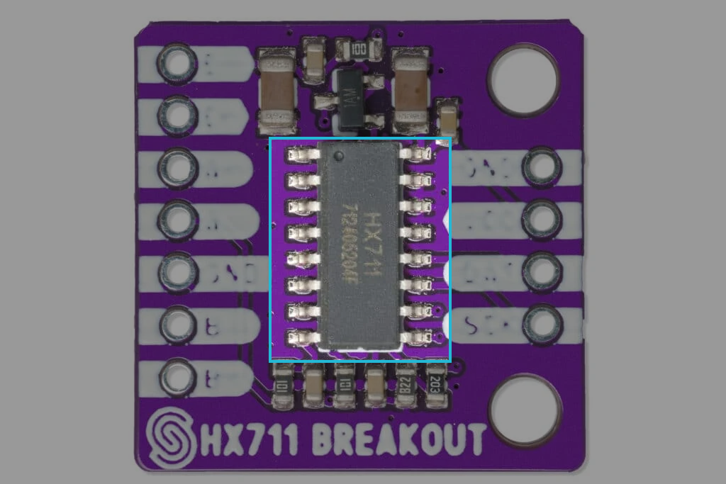 Load Cell Input - The HX711 has two differential input channels that can interface directly with a load cell or other high-impedance sensors. It measures the small voltage changes produced by the load cell under pressure or weight.