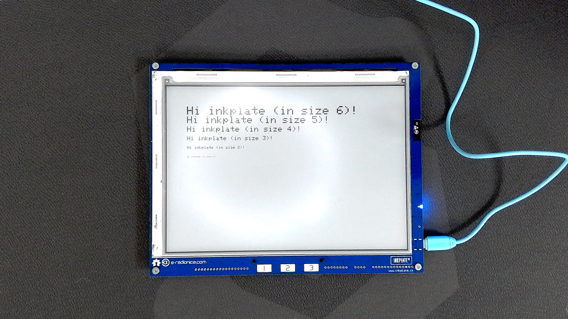 inkplate.print("Hi inkplate (in size 2)!");