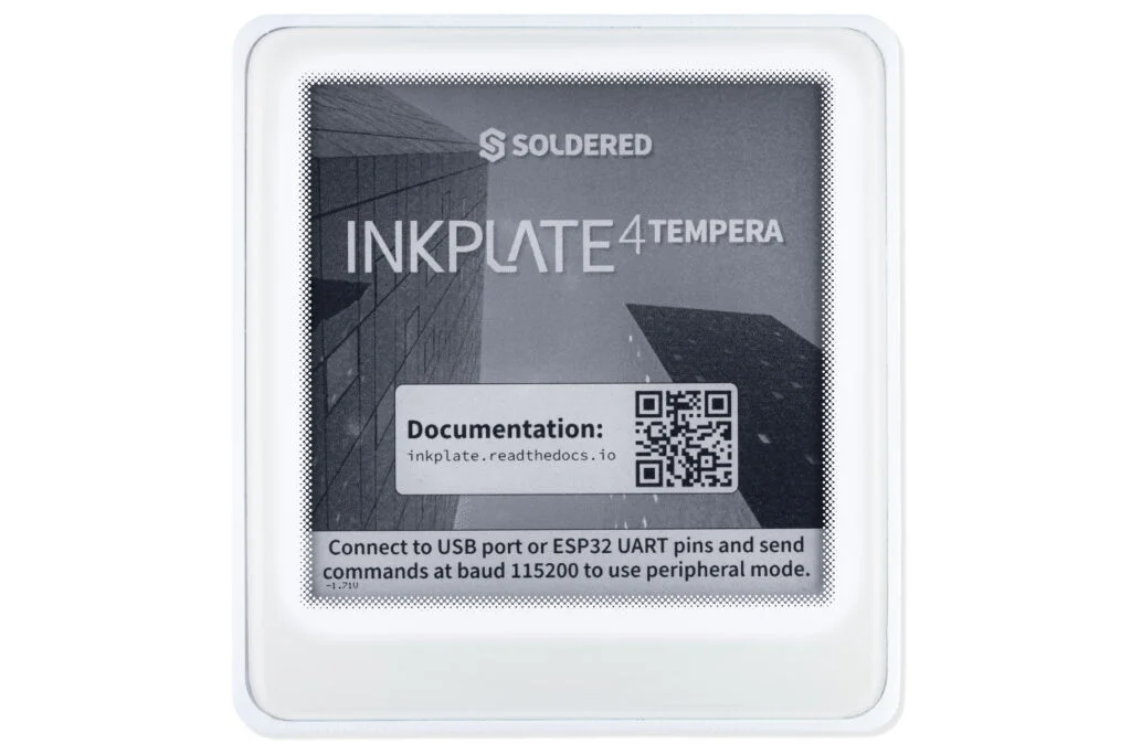 Inkplate 4TEMPERA is a compact, all-in-one 3.8-inch touchscreen e-paper device designed for low-power, always-on display applications. Built around the powerful ESP32 microcontroller, it features Wi-Fi and Bluetooth connectivity, a built-in Li-Ion battery, frontlighting, and a wide array of sensors, all enclosed in a sleek 3D-printed case. It’s perfect for makers, developers, and anyone seeking a sustainable e-paper solution, as each device reuses an ED038TH2 E Ink panel that was originally destined for e-waste.