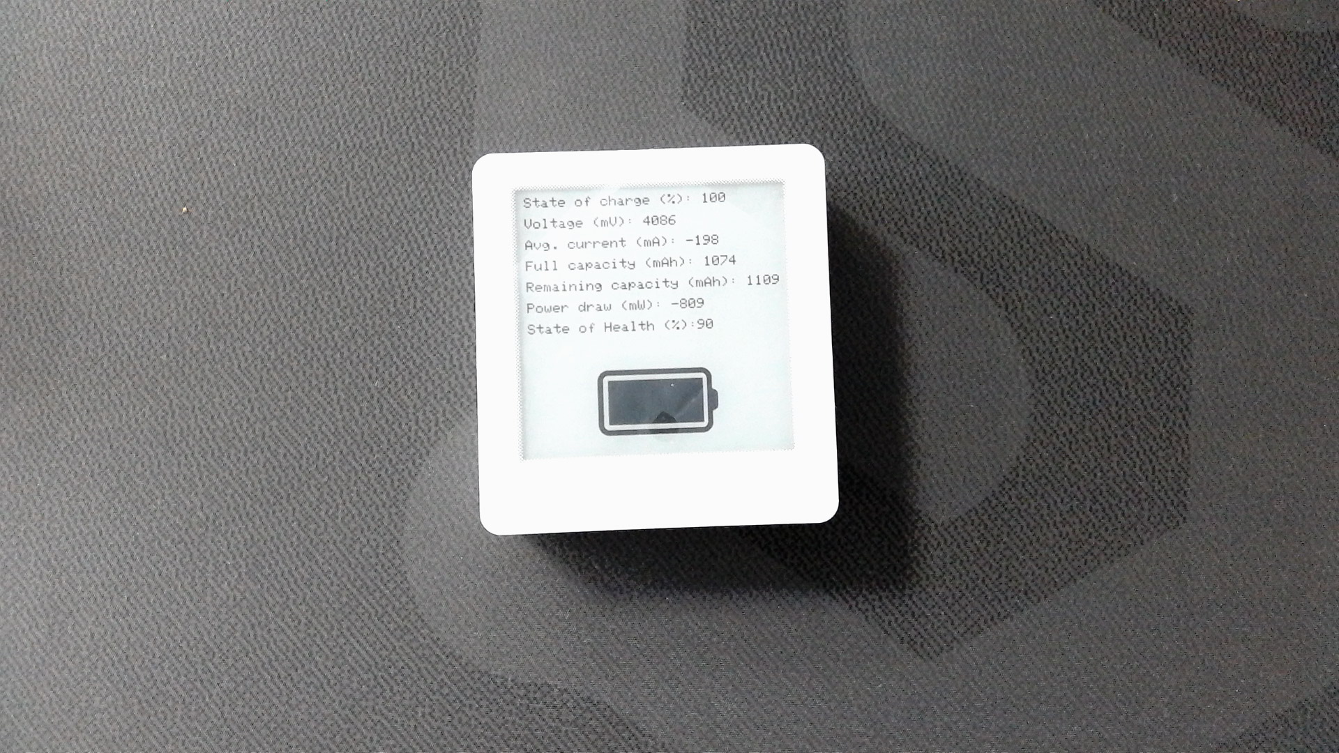 The BQ2441 Fuel Gauge is a special type of accessory for lithium batteries that very precisely measures the state of battery. This includes: voltage[mV], state of charge[%] and remaining capacity in the battery[mAh]. It comes as an integrated sensor on Inkplate 4 TEMPERA and uses a 0x55 address for I2C communication.