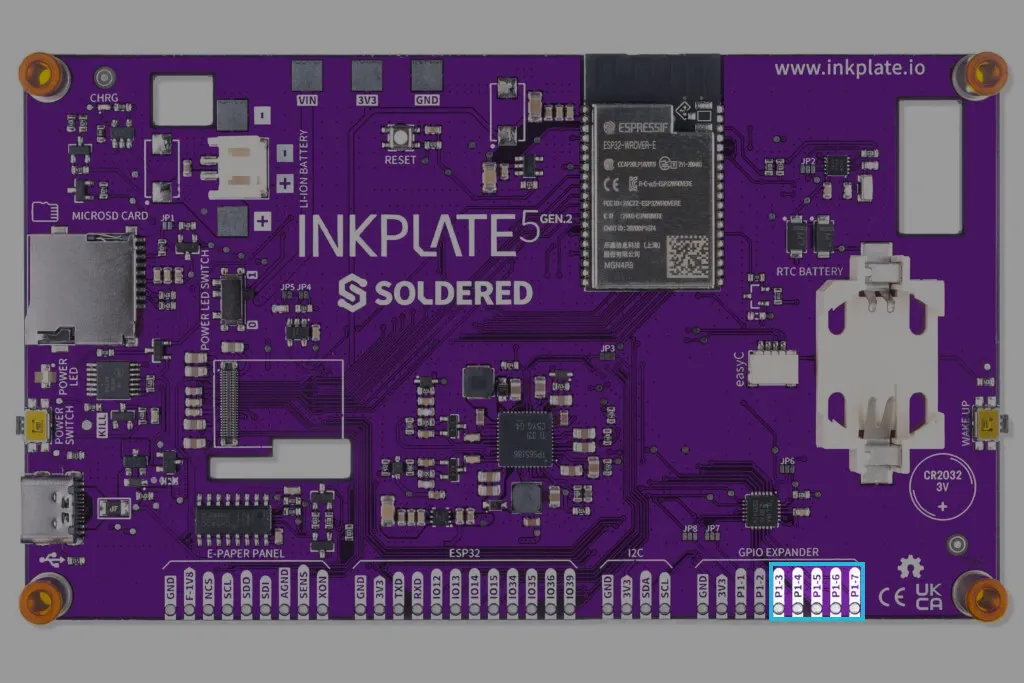 Inkplate 5v2's onboard ESP32 WROVER-E has some pins reserved for internal use (for example, the connection to the e-paper display) and cannot be used for end-user applications. This page contains a list of the available GPIO pins that can be used for external applications.