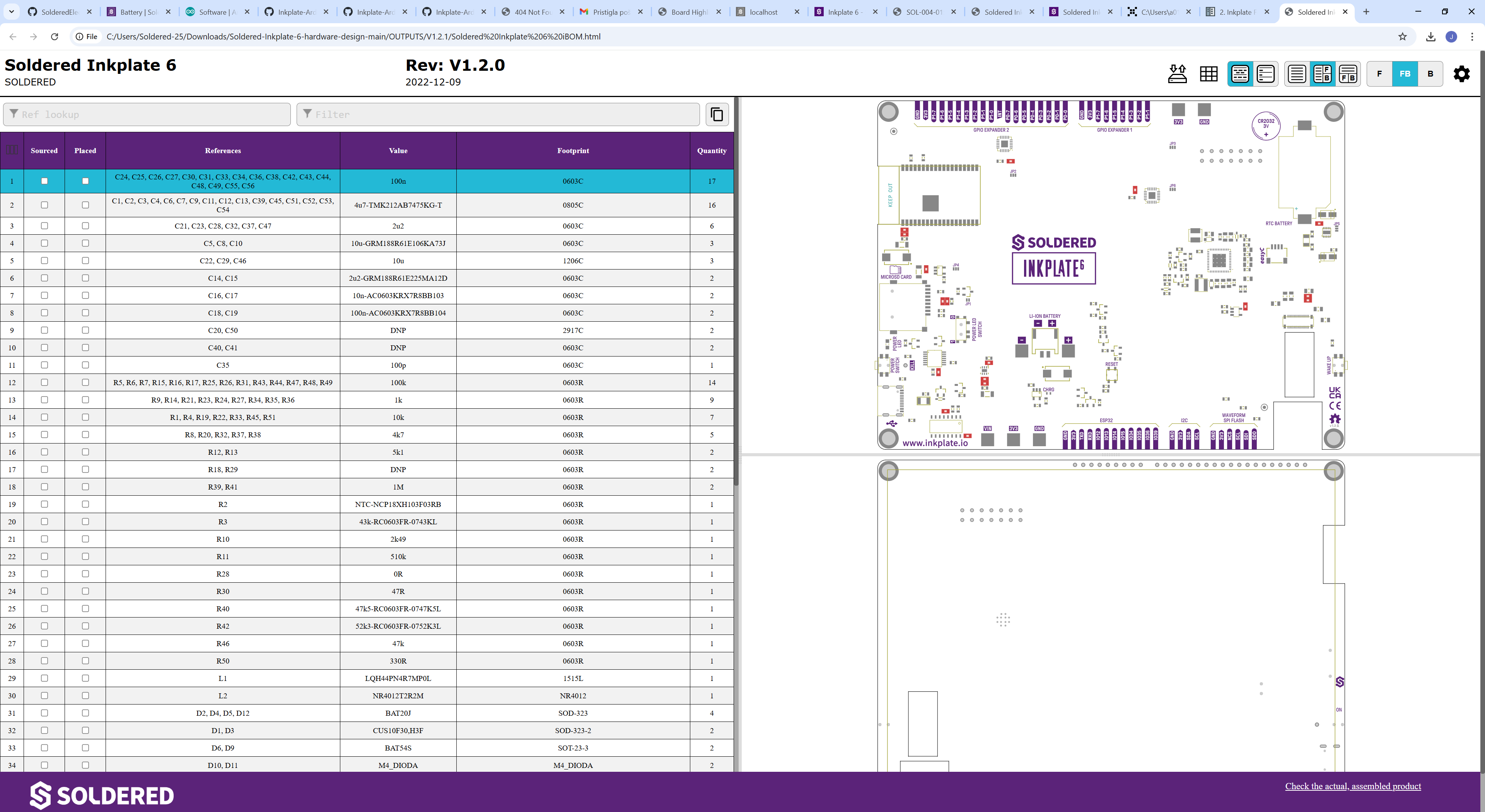 .csvtable, listing all components, part numbers, and values. - An interactive BOM (