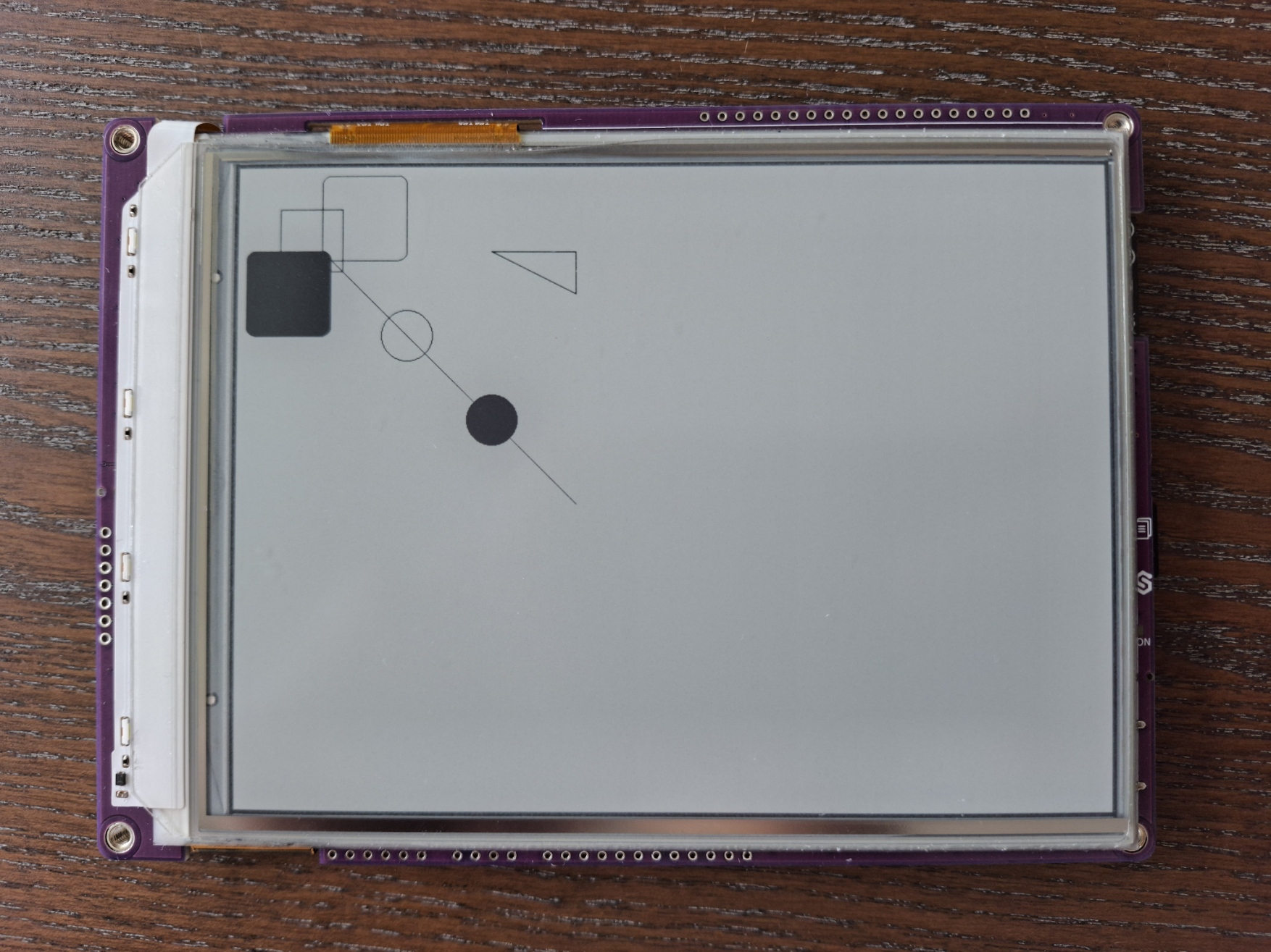 Inkplate 6FLICK allows you to draw different geometric shapes anywhere on its 1024 x 758 px canvas. The shapes can be filled or hollow