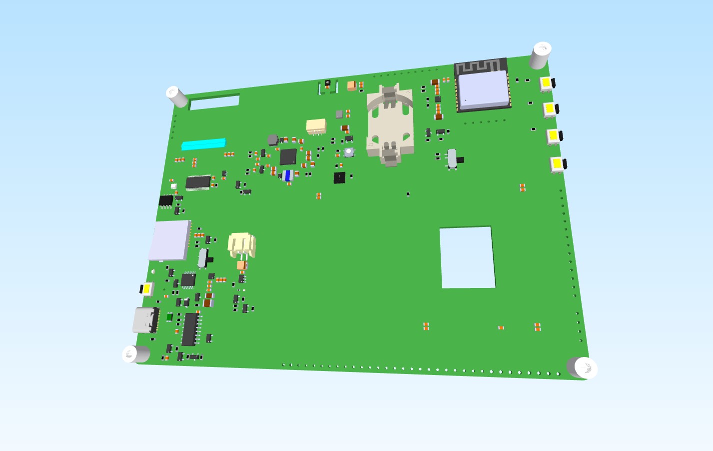 A 3D model of the PCB is available in .step format, allowing you to inspect the board design in CAD software.