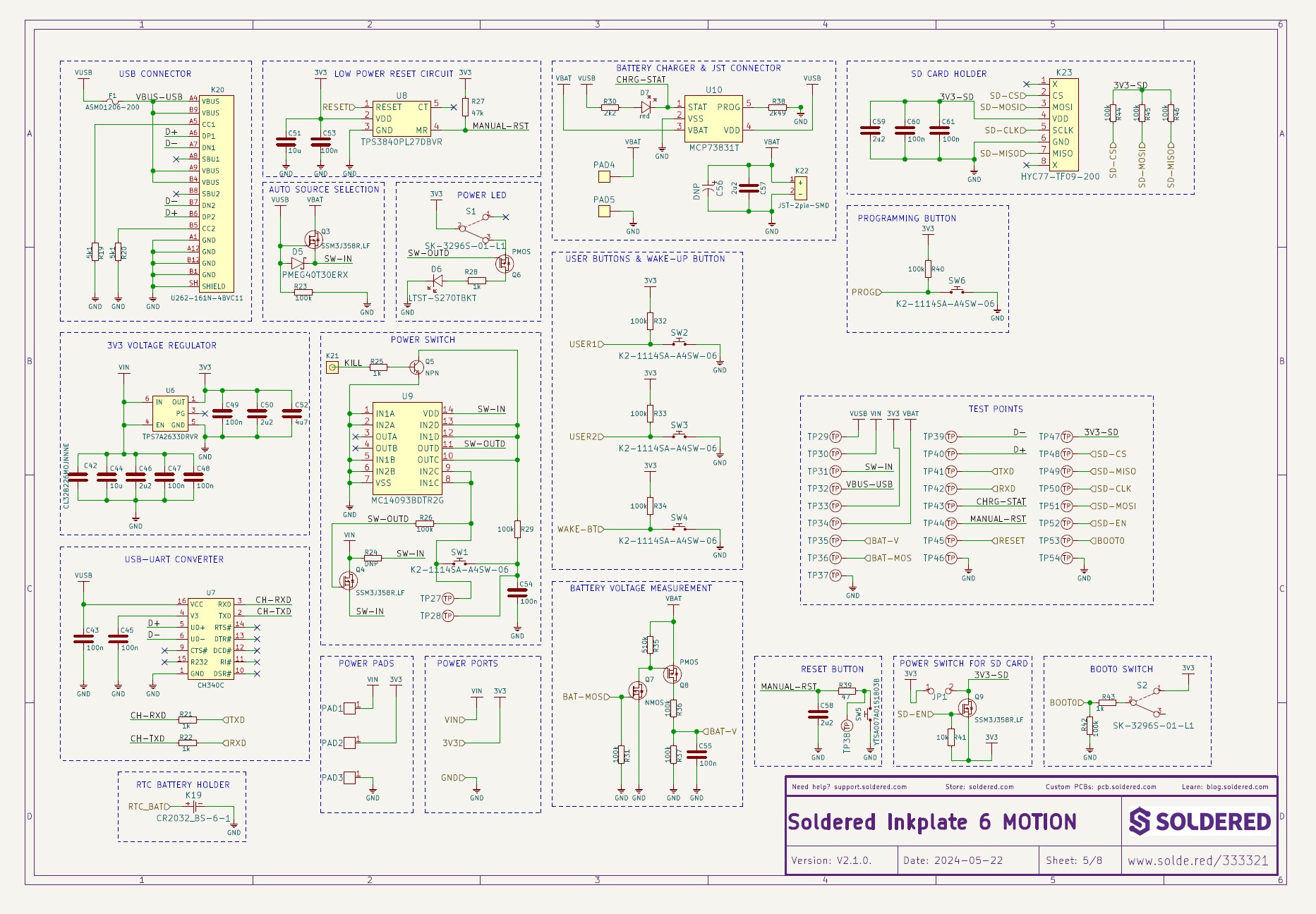Hardware design, BOM, gerbers and 3D files for Soldered Inkplate 6 MOTION, designed by Soldered Electronics