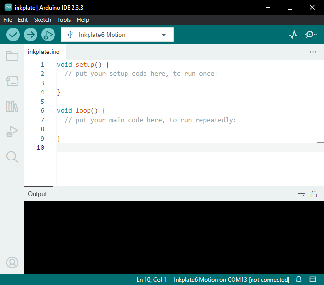 Inkplate 6 MOTION setup is complete. Now, try out some examples from the Arduino library—upload them and see the results for yourself! See the next page in the documentation for details on how to upload code: