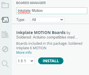 Now, you can open the Boards Manager, search for Inkplate MOTION, and install the Inkplate MOTION board definitions.