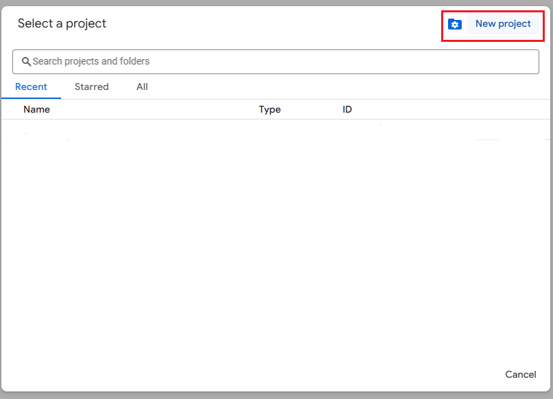 The API key is created via the Google Cloud platform. Go to console.cloud.google.com and create a new project: