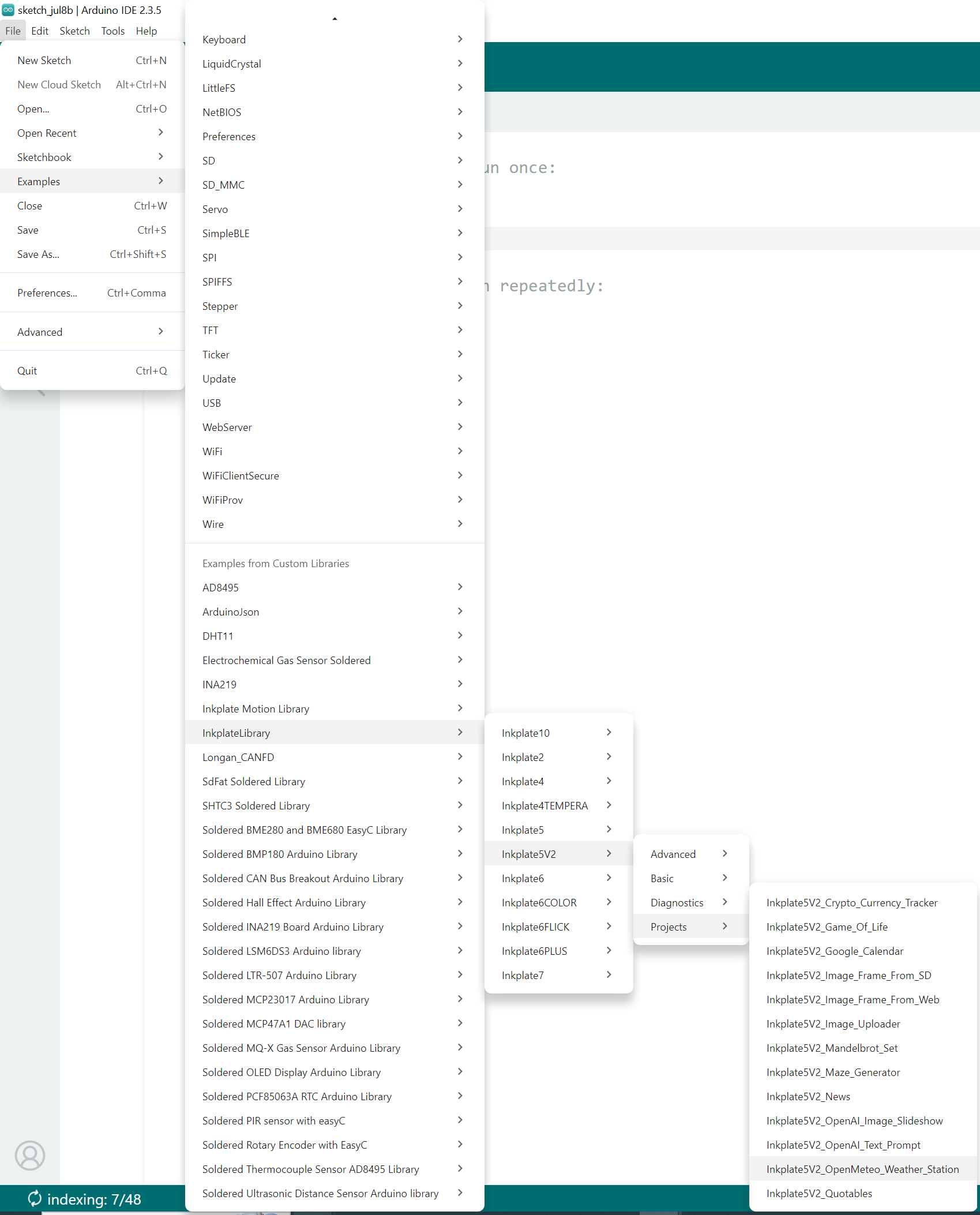 File->Examples->InkplateLibrary->Your Inkplate Device->Projects->Inkplate_OpenMeteo_Weather_Station: