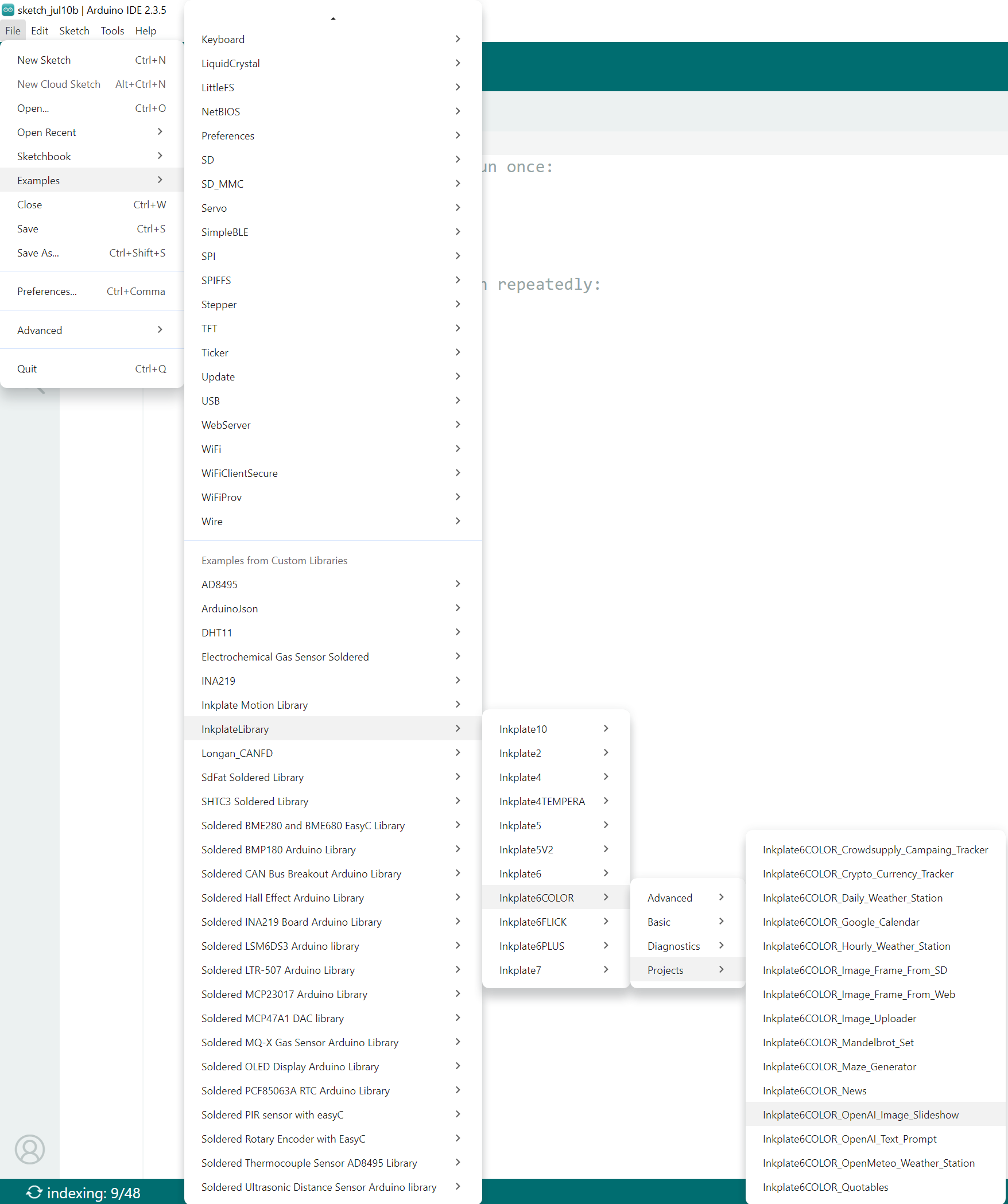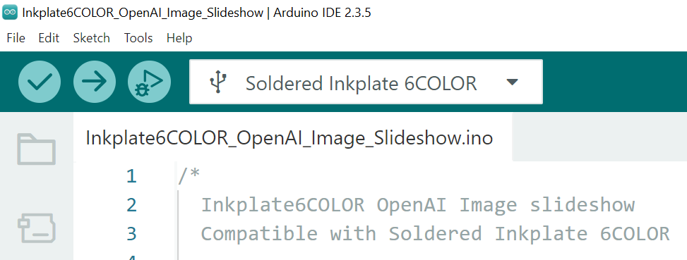 File->Examples->InkplateLibrary->Your Inkplate Device->Projects->Inkplate_OpenAI_Image_Slideshow:
