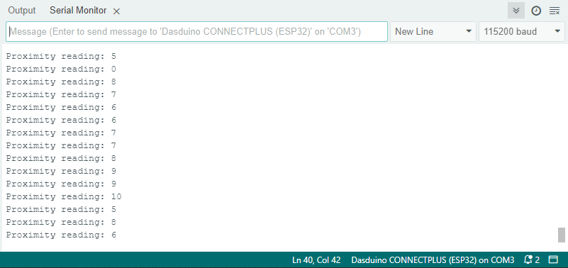 Serial.println(proximityReading); // Print proximity value to Serial Monitor