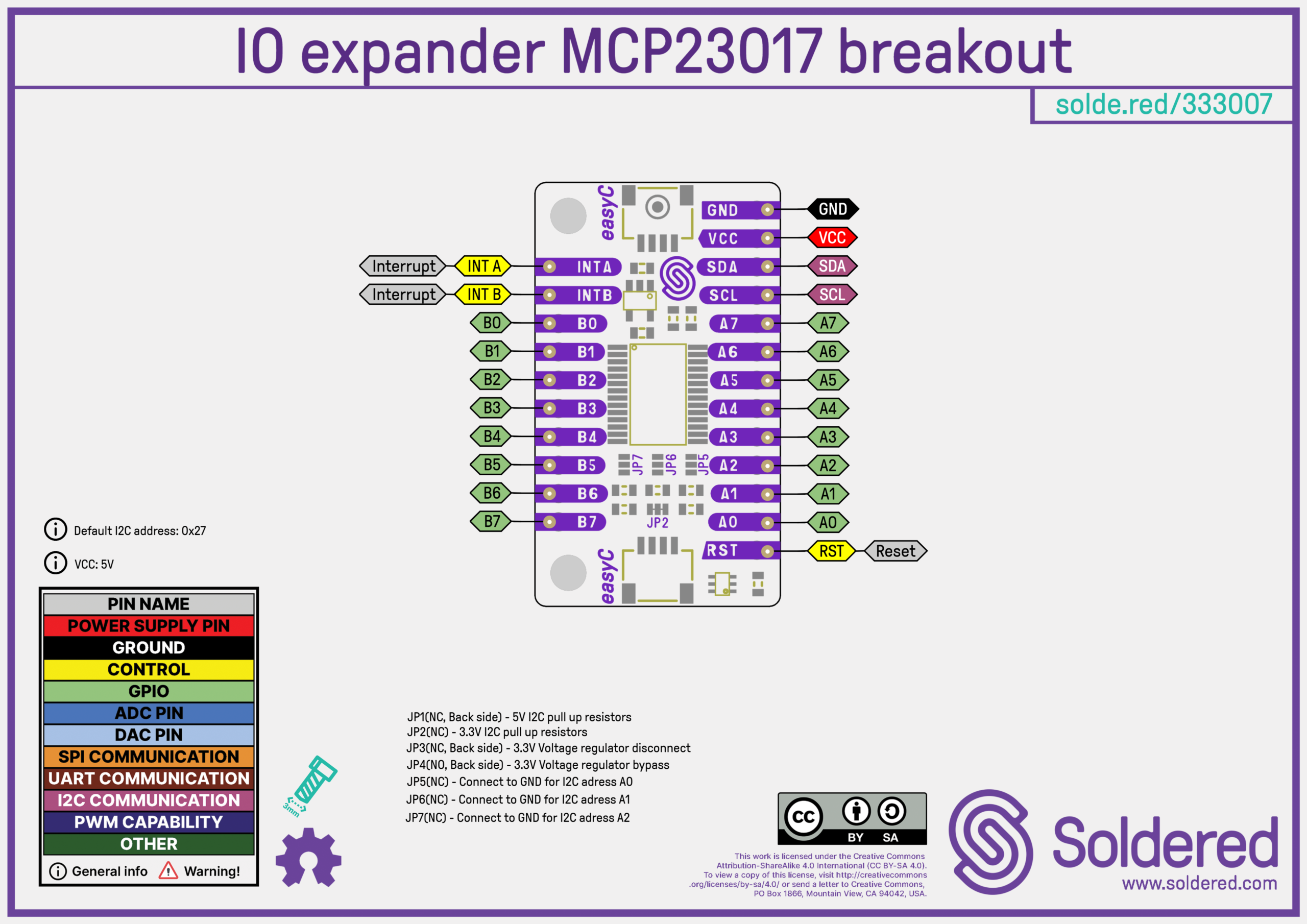 | JP5 | NC (Normally closed) | When connected to GND, sets the I2C address to 0xA0. |