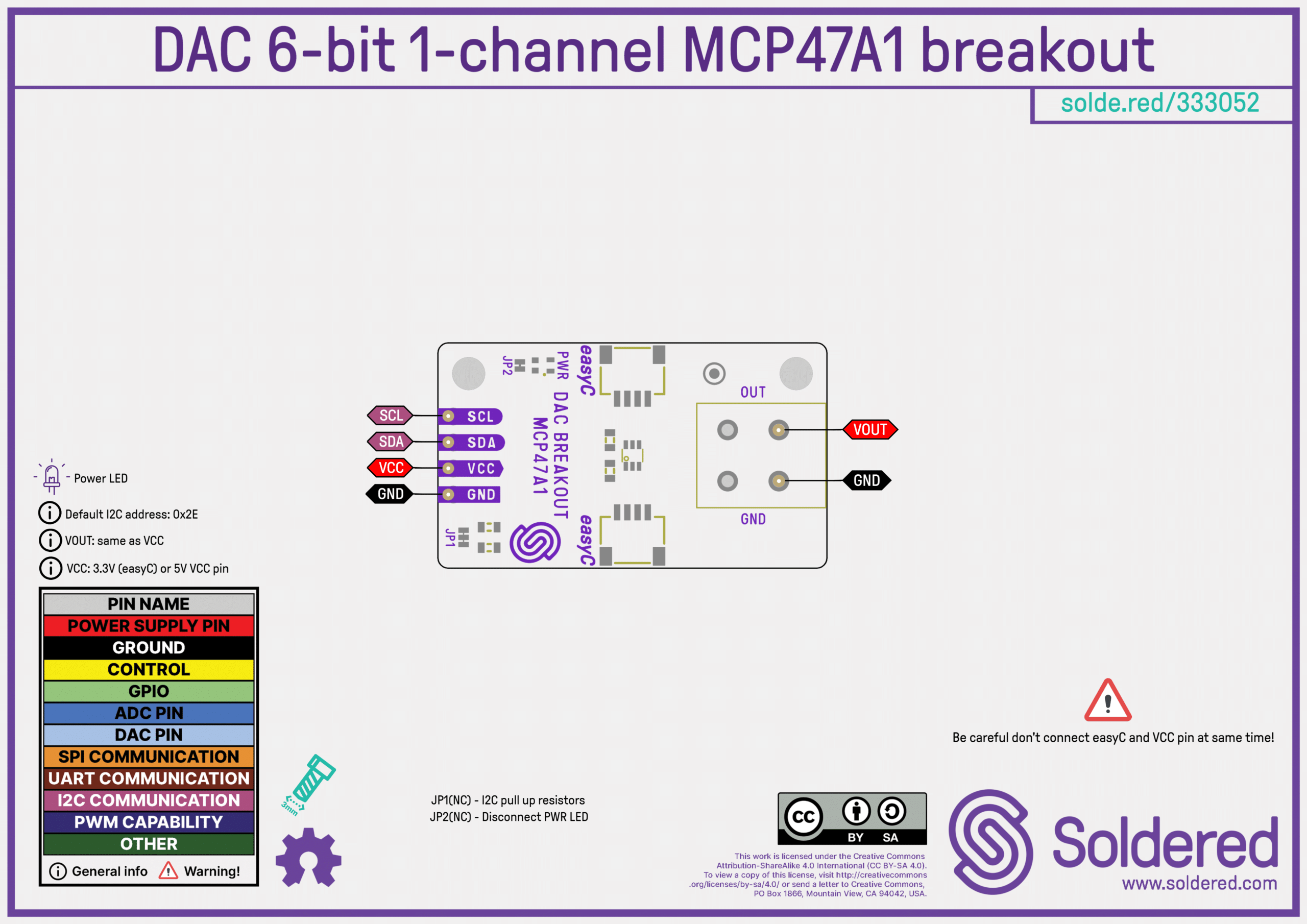 DAC 6-bit 1-channel MCP47A1 breakout Hardware Design