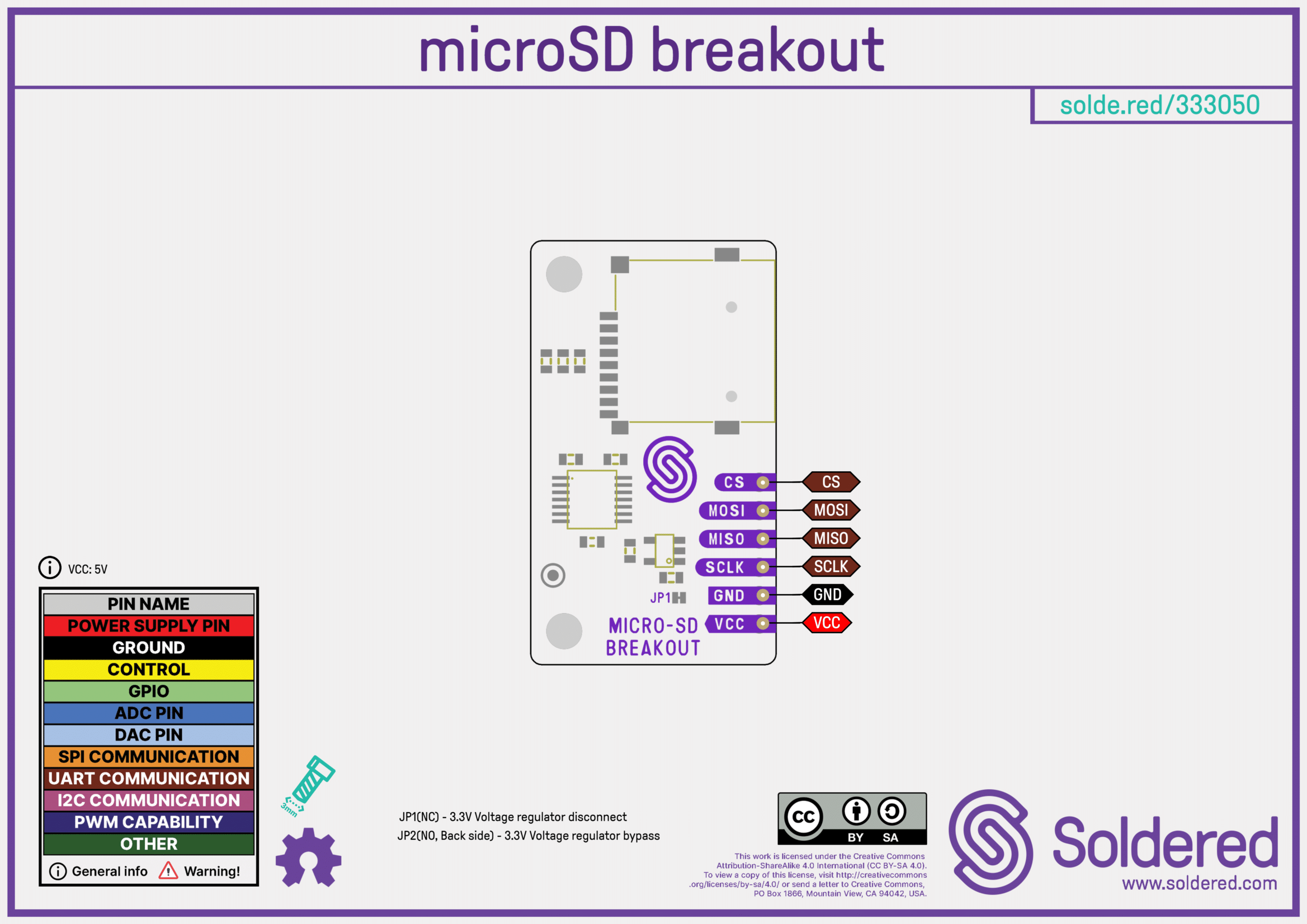 | JP1 | NC (Normally closed) | Disconnects the 3.3V voltage regulator |