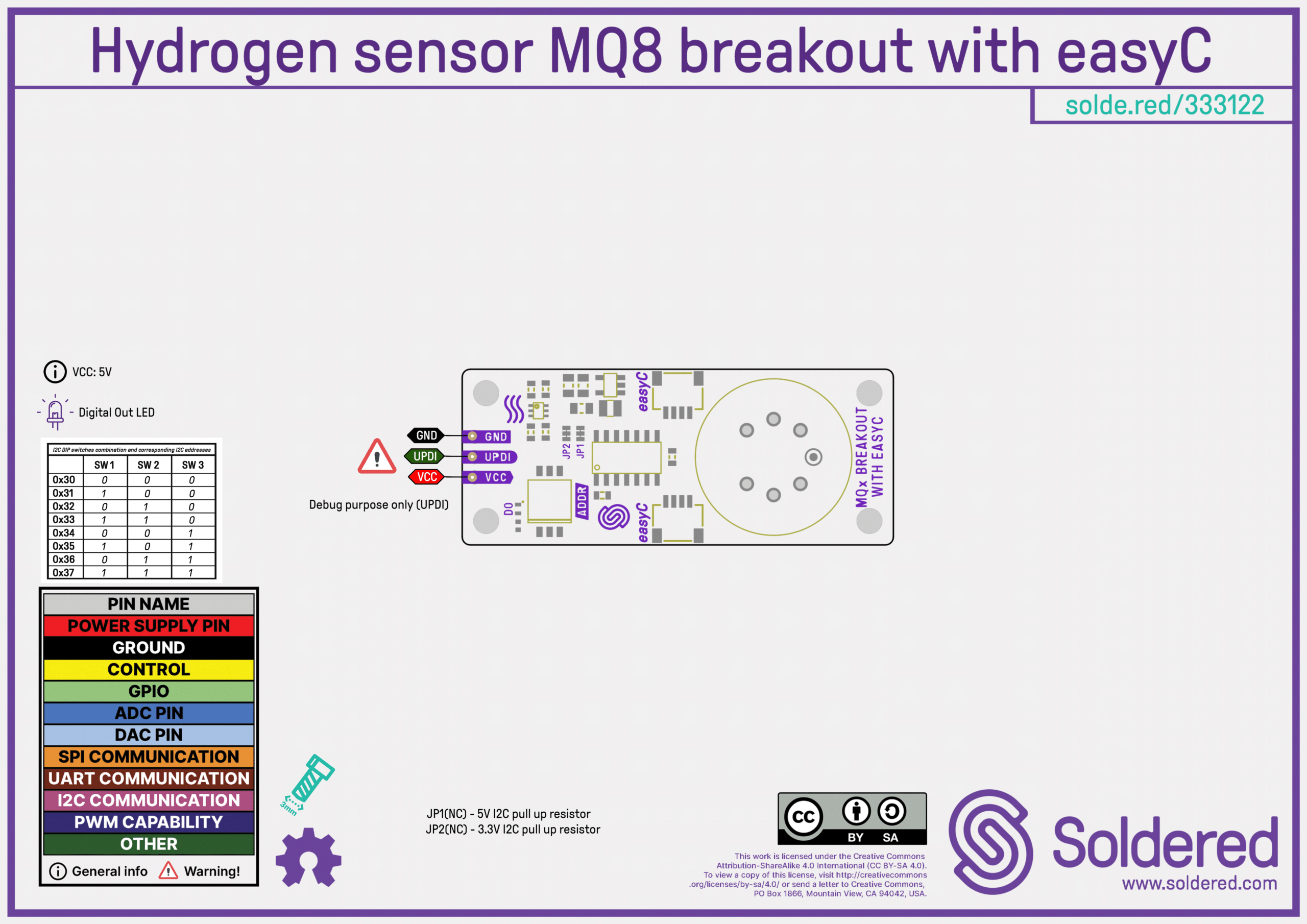 | JP2 | NC (Normally closed) | Connects SDA/SCL pull-up resistors to 3.3V for I2C communication. |