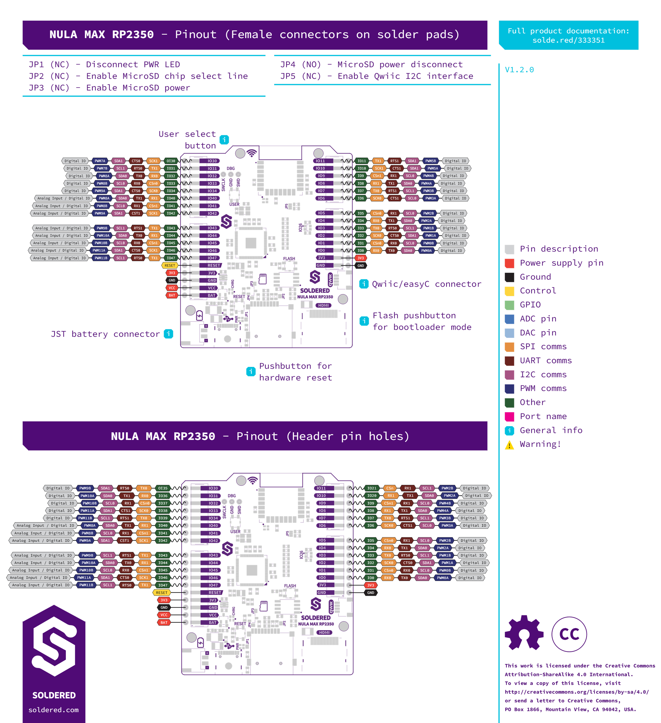 | JP5 | NC (Normally Closed) | Enables Qwiic I²C interface. |