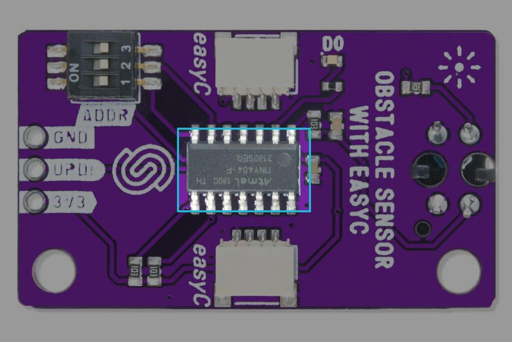 This board uses an onboard ATTiny404 MCU to implement I2C communication. The board operates on a default I2C address of 0x30, but it can be changed using onboard switches. To change the board's address, check the Address selection. When detected, ATTiny404 receives data from the sensor and passes it to the main MCU using the I2C data line. To check in detail how the ATTiny404 is preprogrammed, check the firmware GitHub page.