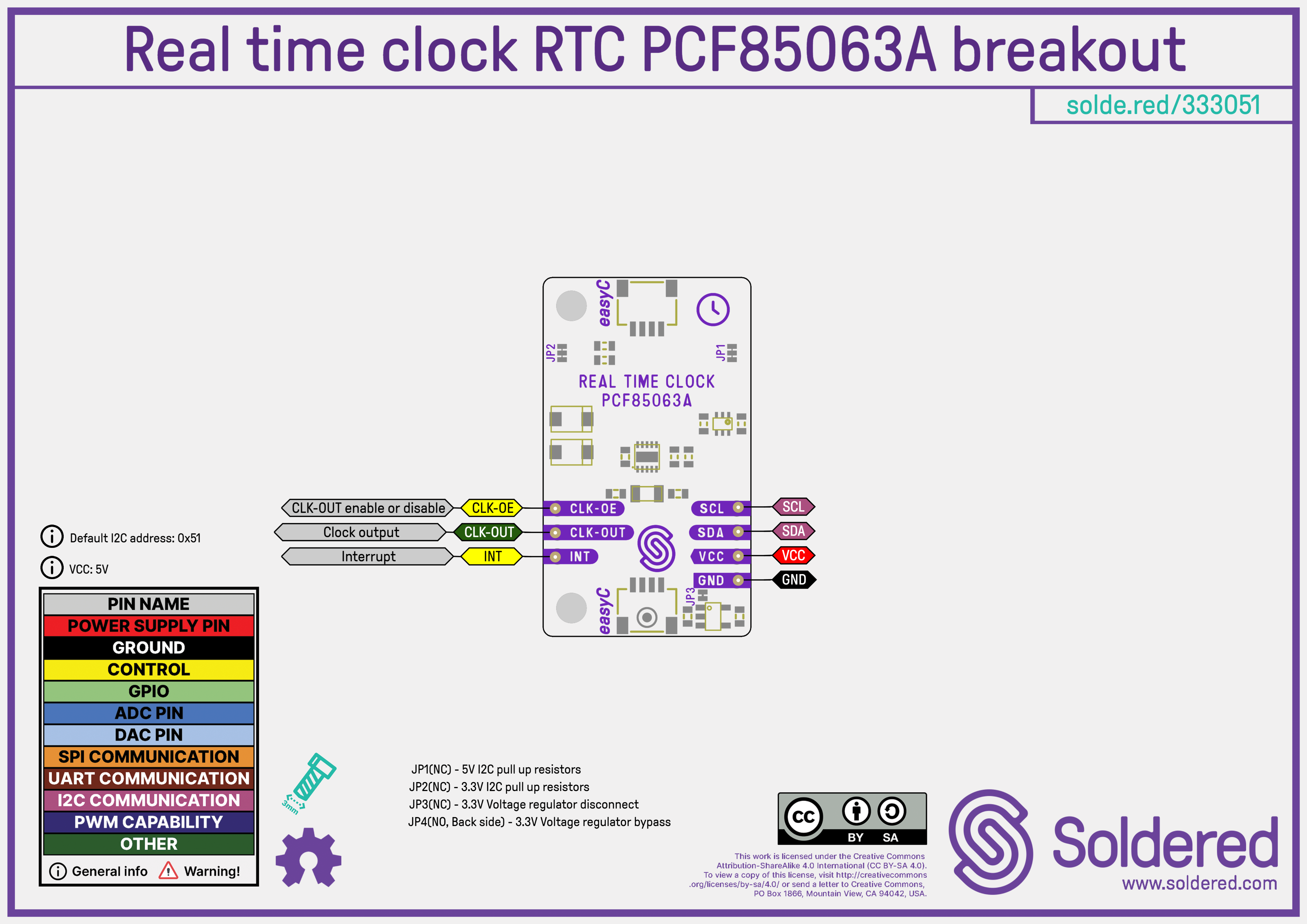 | JP1 | NC (Normally closed) | Connects SDA/SCL pull-up resistors to 5V for I2C communication. |