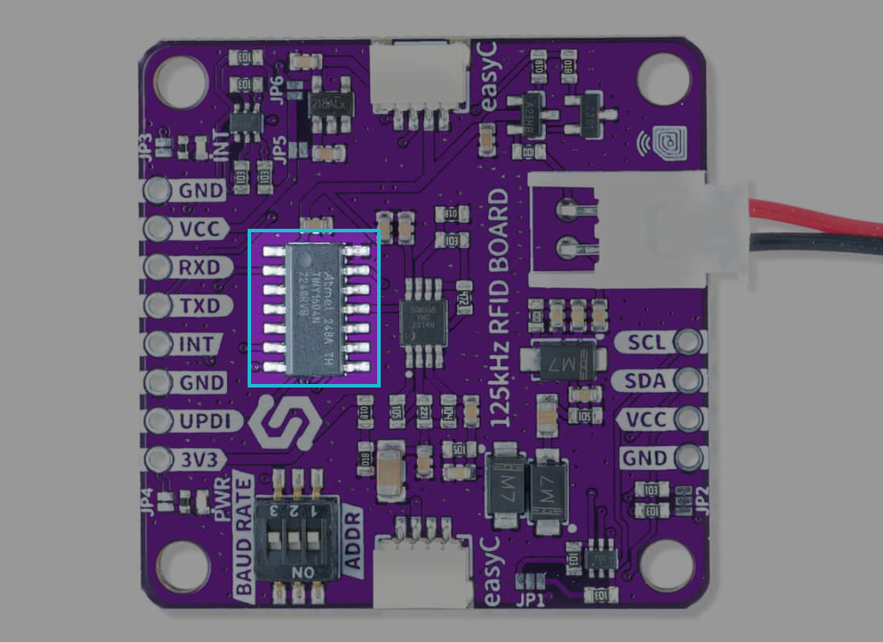 The 125kHz RFID Tag Reader Board I2C version supports I2C communication, allowing seamless integration with microcontrollers. This variant is ideal for applications requiring multiple devices on the same bus or low pin usage.