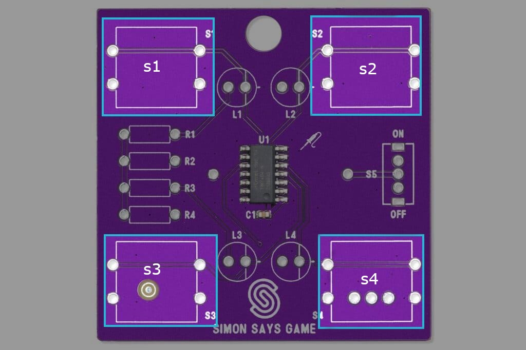 Solder the pushbutton on pins marked S1 to S4, orientation doesn't matter.