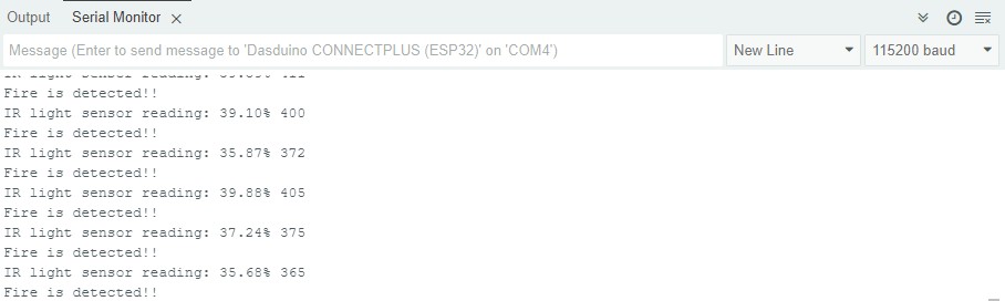 Serial.println("Fire is detected!!");
