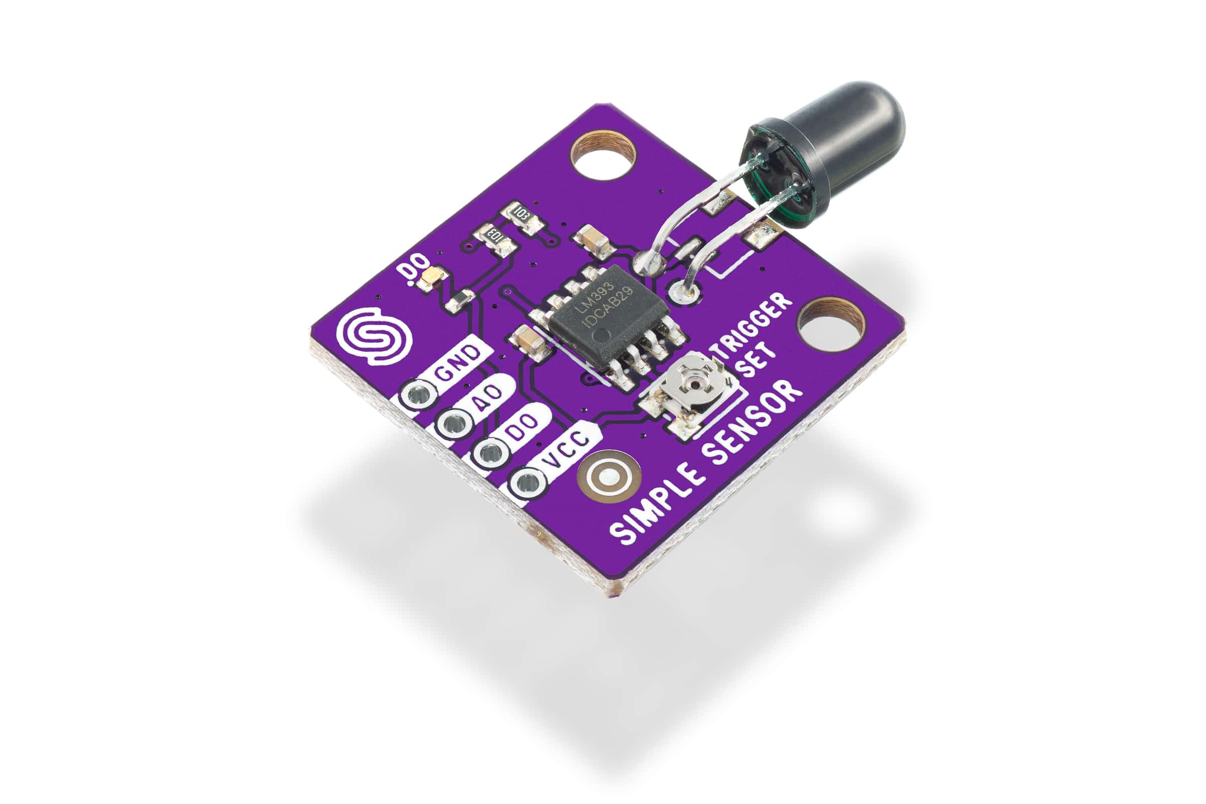 The simple fire sensor breakout board is a precise sensor that detects infrared radiation. This sensor is applicable in any project that requires the detection of IR radiation; one example is flame detection. This sensor also comes in a version with I2C communication, with a default address of 0x30, and is designed for seamless Qwiic (formerly easyC) connectivity—eliminating the need for soldering.