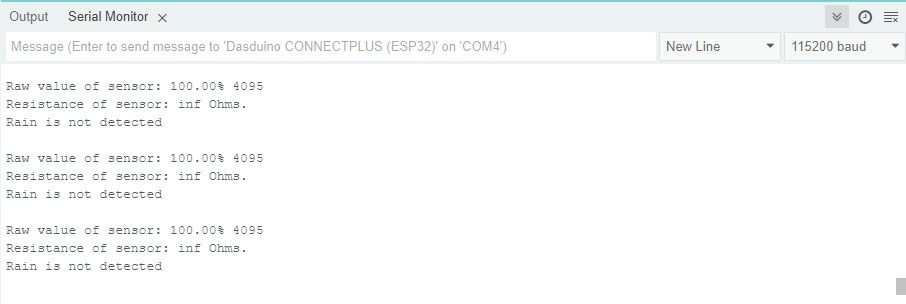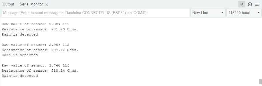 Serial.println(sensor.getRawValue()); // Prints raw value of rain sensor