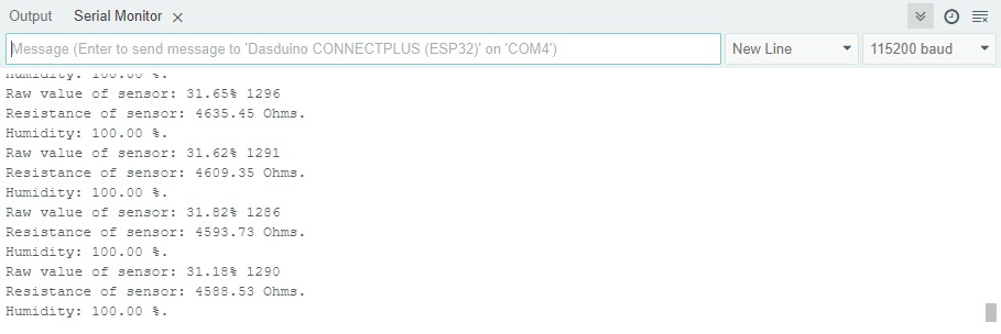 Serial.println(sensor.getRawValue()); // Prints raw value of soil sensor