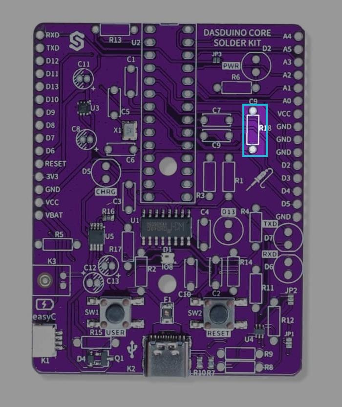Solder the 100Ohm resistors to the bpc on pins marked R18. Their orientation doesn't matter.