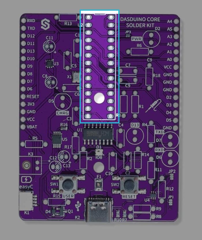 Solder the socket to the pbc on pins marked U2 (its drawn topology).
