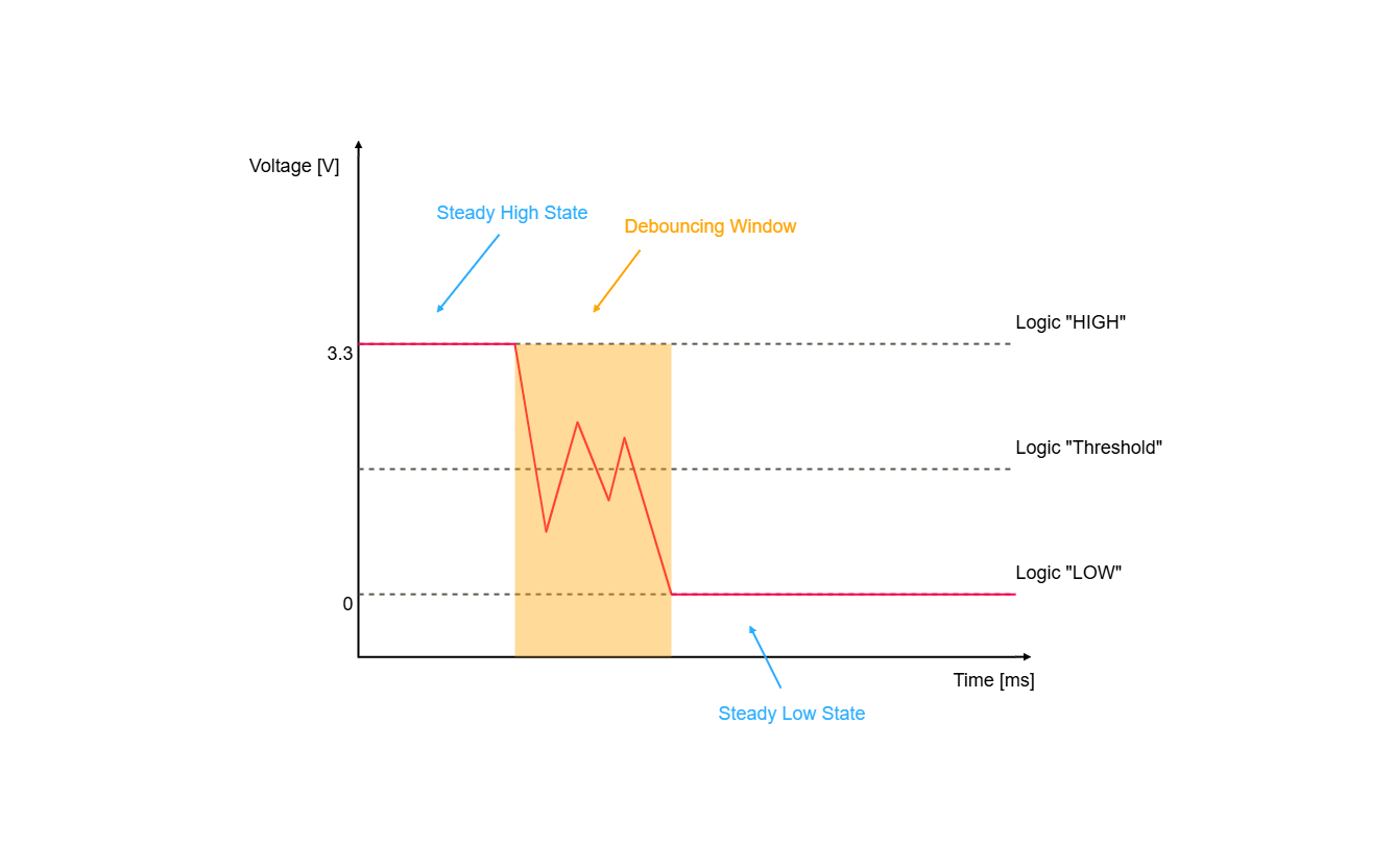 When we press a physical button, its contacts can bounce rapidly, causing the microcontroller to detect multiple presses instead of one.
