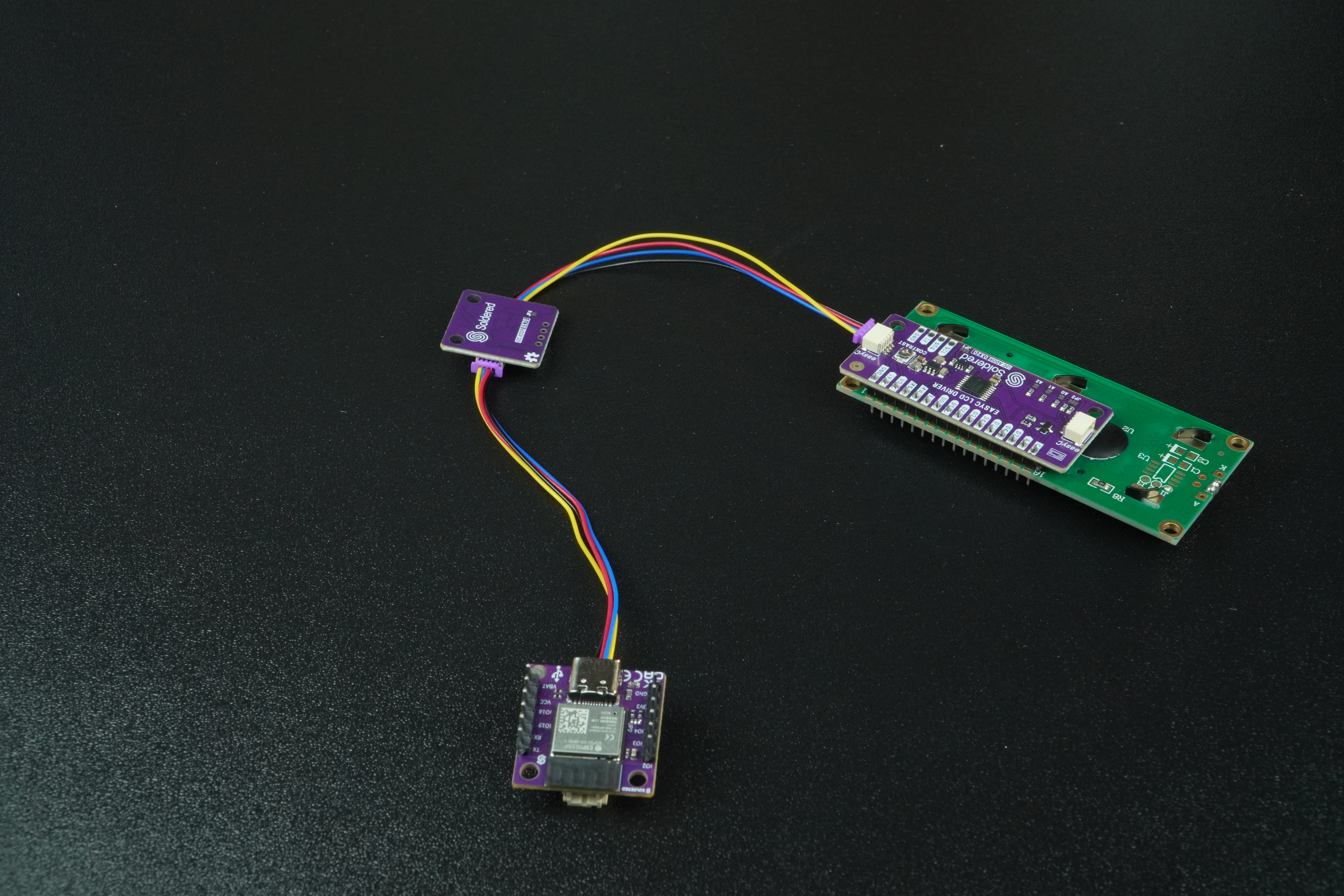 No extra wiring is needed — just connect one Qwiic cable from the NULA MINI to the sensor, and another from the sensor to the LCD.