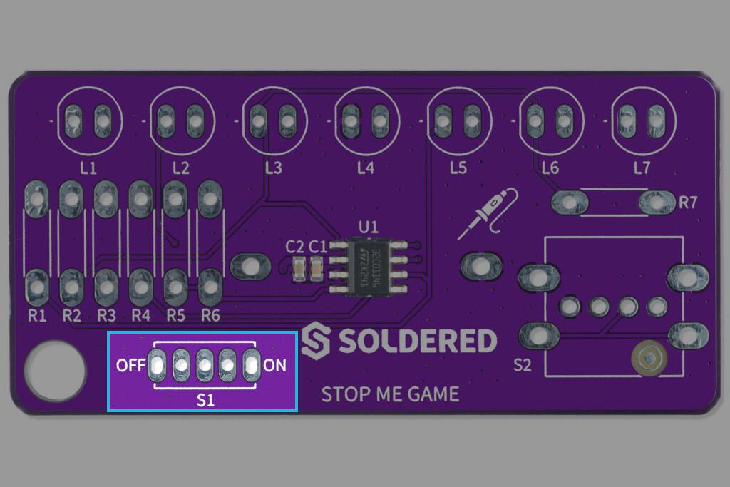 Solder the switch on pins marked S1, orientation doesn't matter.