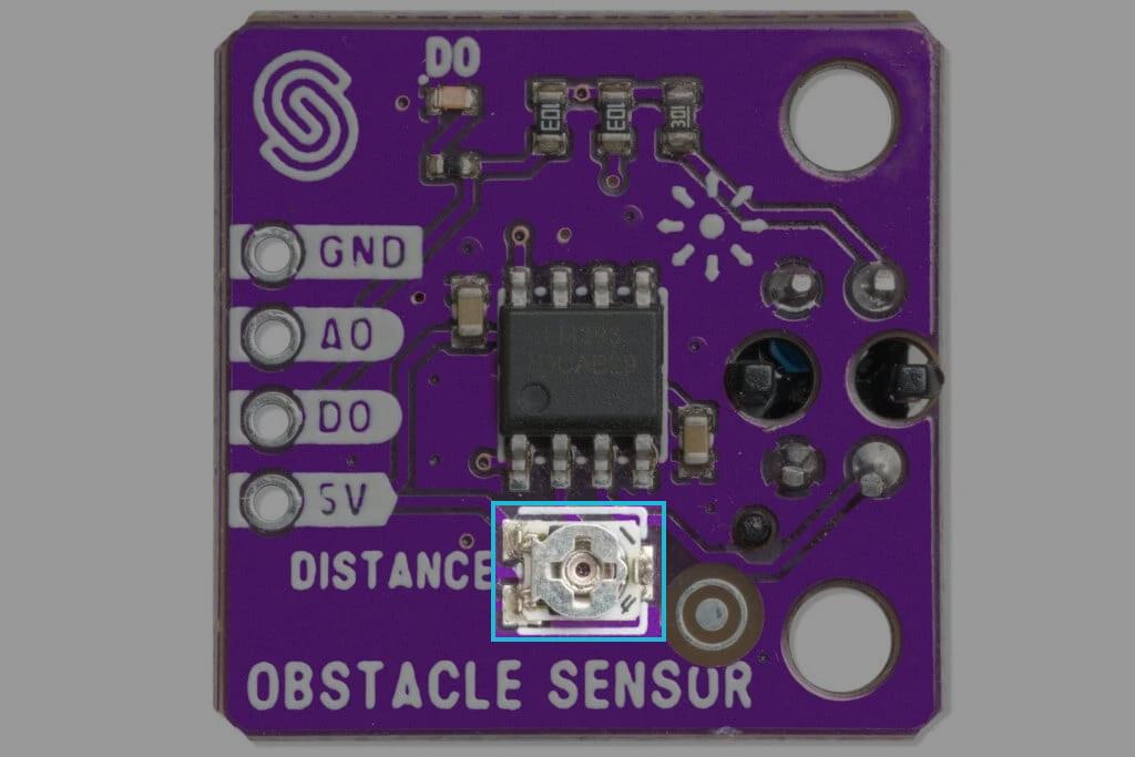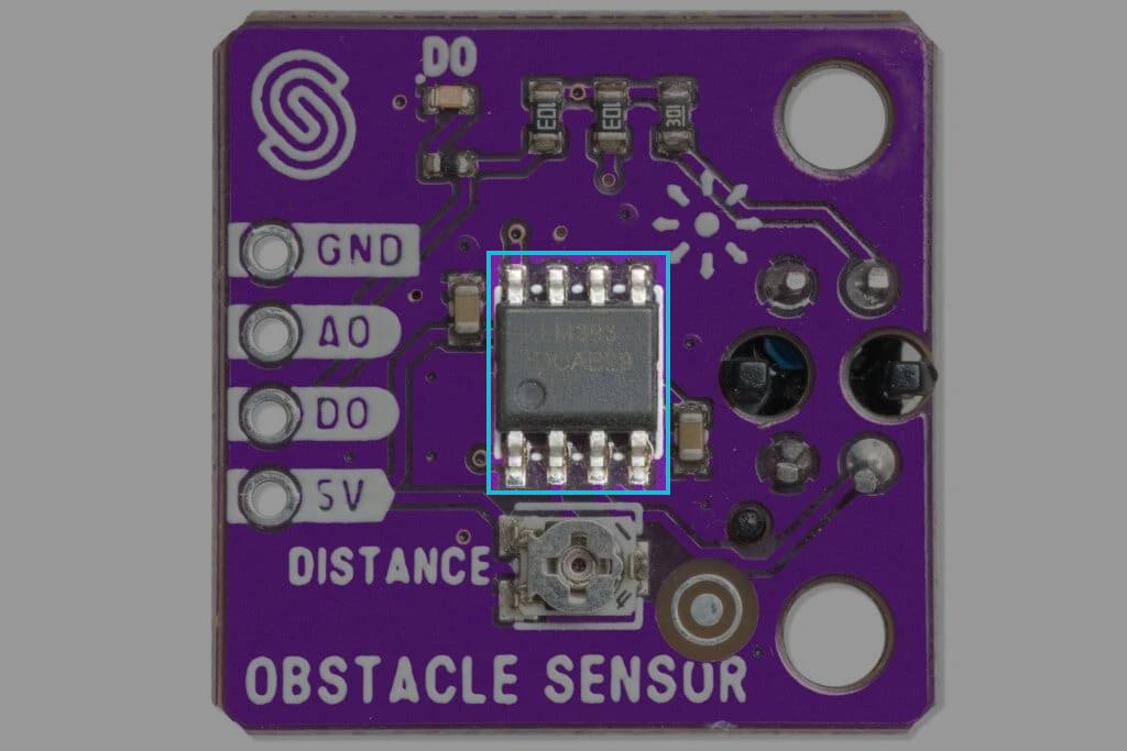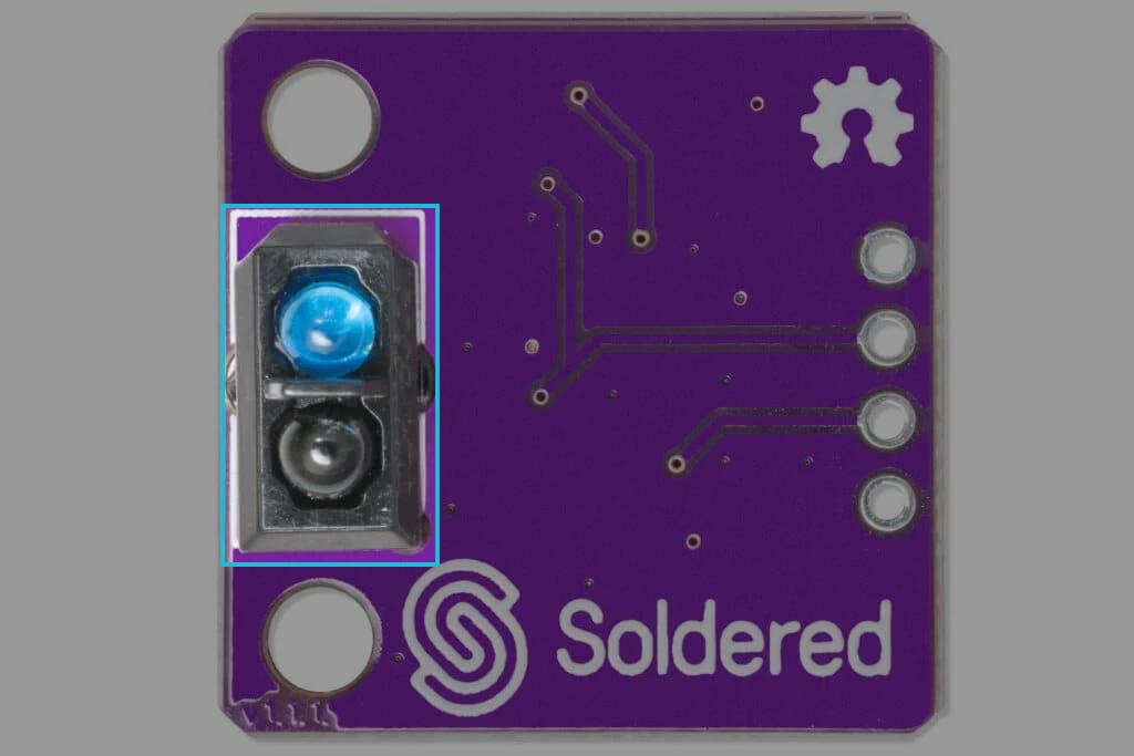 This board utilizes TCRT5000 infrared reflective sensor by Vishay and * to detect color and objects. This board also includes additional features to make it easier to use. It adds a LM393 Voltage comparator* by Texas Instruments and a potentiometer to adjust its sensitivity.