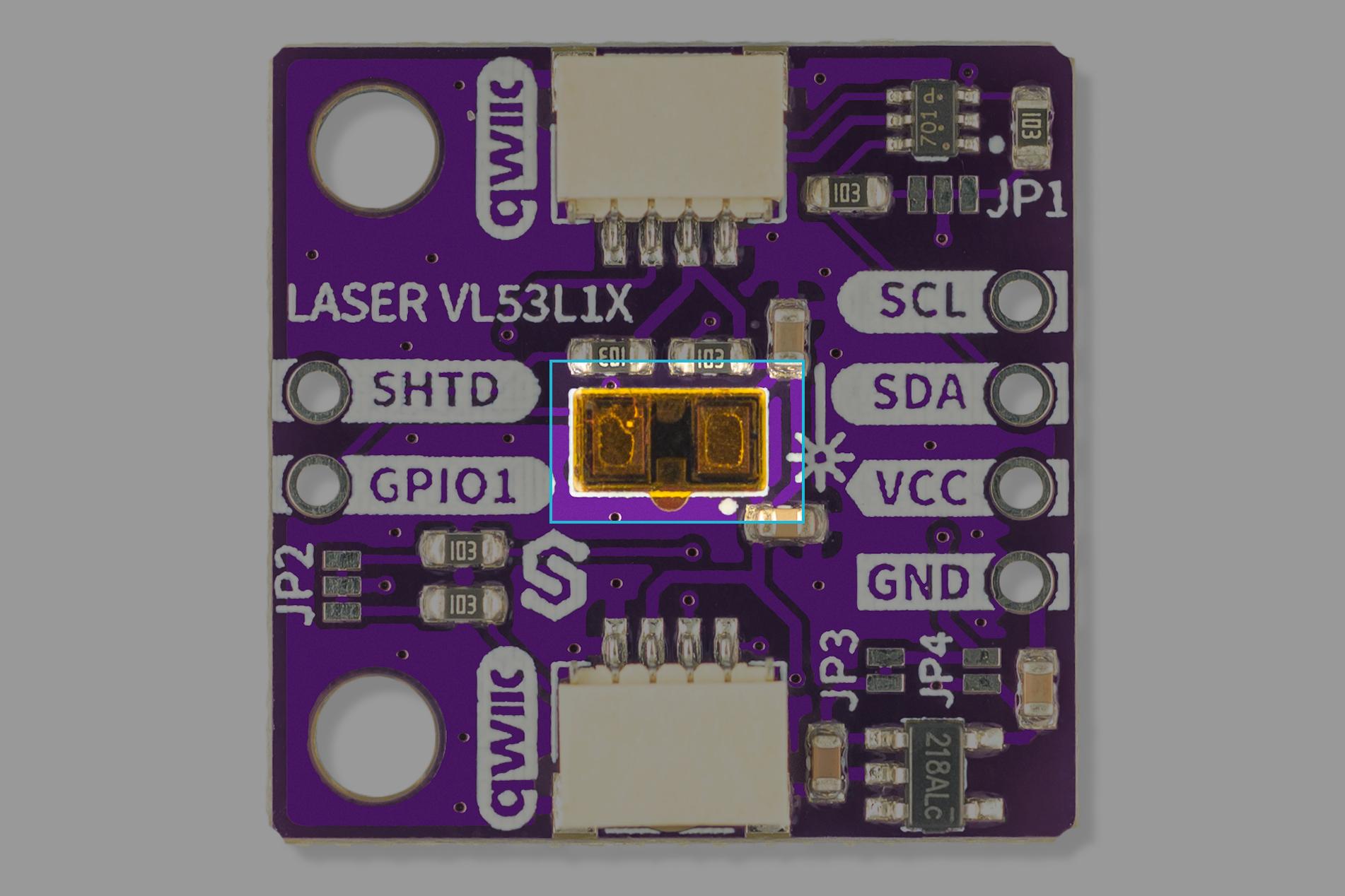 The VL53L1X is an advanced and compact Time-of-Flight (ToF) distance sensor, meaning it measures how long the light has taken to bounce back to sensor unlike IR sensors that measure amount of light reflected back to them. It uses a very narrow light source, which makes it very precise at determining the distance of the surface in front of it.